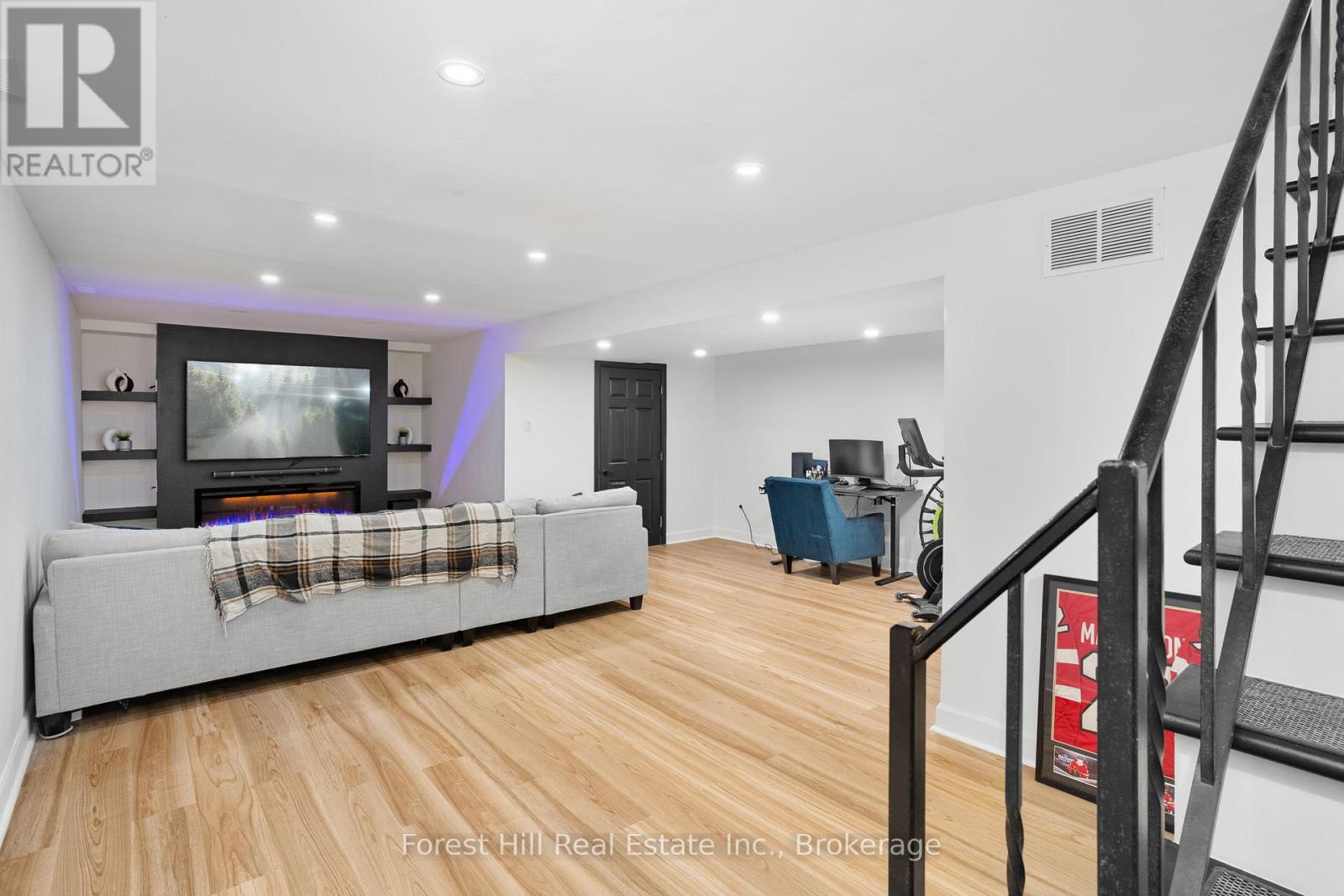 Welcome to 1 Maplecrest Court, a thoughtfully updated two storey family home tucked into a quiet neighbourhood just steps from the heart of Huntsville. Here, you can stroll to local shops, grab coffee on foot, meet friends for dinner downtown, and still enjoy the privacy and calm of a mature, tree-lined yard.This 4 bedroom, 2.5 bathroom home has been refreshed with today's family in mind. The kitchen has been beautifully renovated (2023)to create a bright, functional space. Fresh paint throughout and newly installed, durable Lifeproof vinyl flooring make everyday living easy. The main floor bathroom has been updated and central air (added 2023)keeps the home comfortable year round.Upstairs offers four bedrooms with room for growing families, guests, or a home office.The newly finished basement (2026) adds valuable living space with a versatile recreation/family room, a brand new 3 piece bathroom, and a dedicated laundry room. It is the kind of lower level that works for busy family life, movie nights, or teenagers who want their own space.Outside, the yard feels private and serene, framed by mature trees. A fire pit invites relaxed evenings and the partial fencing adds extra privacy. The attached garage with interior entry makes daily life that much more convenient. Complete roof replacement with 3 new roof vents and shingles and property was professionally re-graded in 2023. Ask for complete list of renovations. Located close to public schools and within walking distance to downtown Huntsville's shops and amenities, this home offers the rare combination of space, updates, and true walkability. For families looking to upsize or make a move to Huntsville, 1 Maplecrest Court is ready. (id:58834)