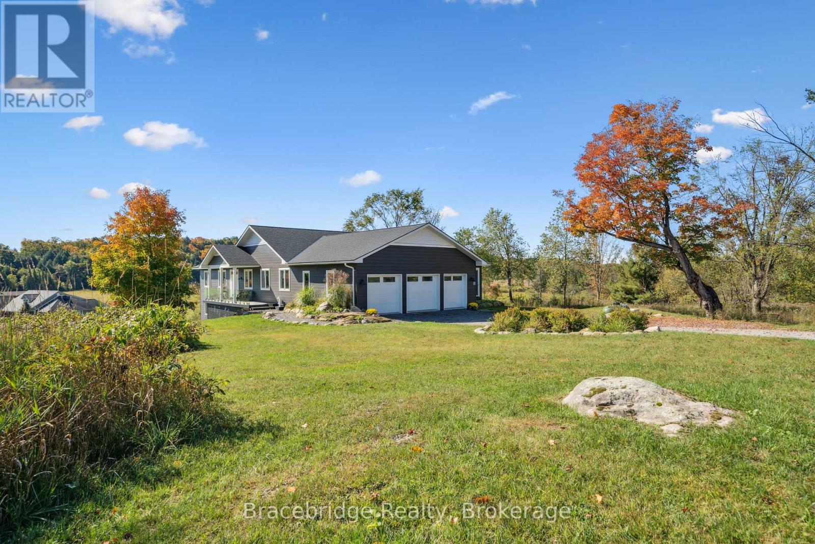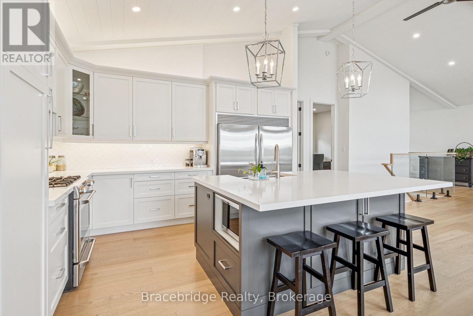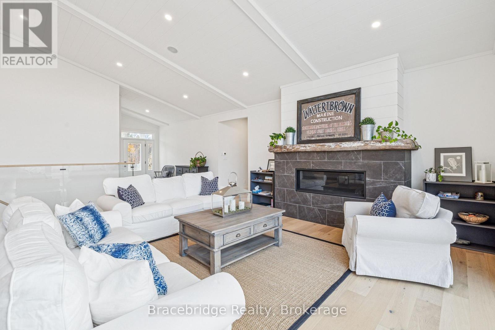 Welcome to this exceptional 5-bedroom, 3-bathroom custom-built residence (2023), where thoughtful design meets elevated Muskoka living. Ideally located just minutes from downtown and only moments to Lake Muskoka-with walking access to Strawberry Bay Beach-this home offers the perfect balance of convenience, privacy, and natural beauty. Crafted with quality and intention, the home is designed for seamless main-floor living, featuring a bright, open-concept layout, a dedicated home office, and expansive windows that frame peaceful, treed views from every angle. The gourmet kitchen anchors the space, effortlessly connecting to the dining and living areas-perfect for both entertaining and everyday living. Warmth and comfort are felt throughout, with two propane fireplaces enhancing both the main living area and the inviting four-season Muskoka room-an ideal space to unwind year-round. The primary suite is a true retreat, offering two walk-in closets, a beautifully appointed spa-like ensuite, and tranquil views of the surrounding landscape. The fully finished, above-grade walkout lower level adds incredible versatility. A spacious three-bay garage provides ample room for vehicles, storage, and all your Muskoka essentials, supporting an effortless four-season lifestyle. Set in a highly sought-after location with easy access to amenities, trails, and the lake, this home delivers the rare combination of modern craftsmanship, functional design, and timeless appeal. Turn-key and move-in ready, this is an outstanding opportunity to experience Muskoka living at its finest. (id:58834)