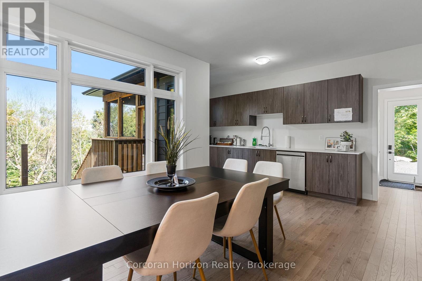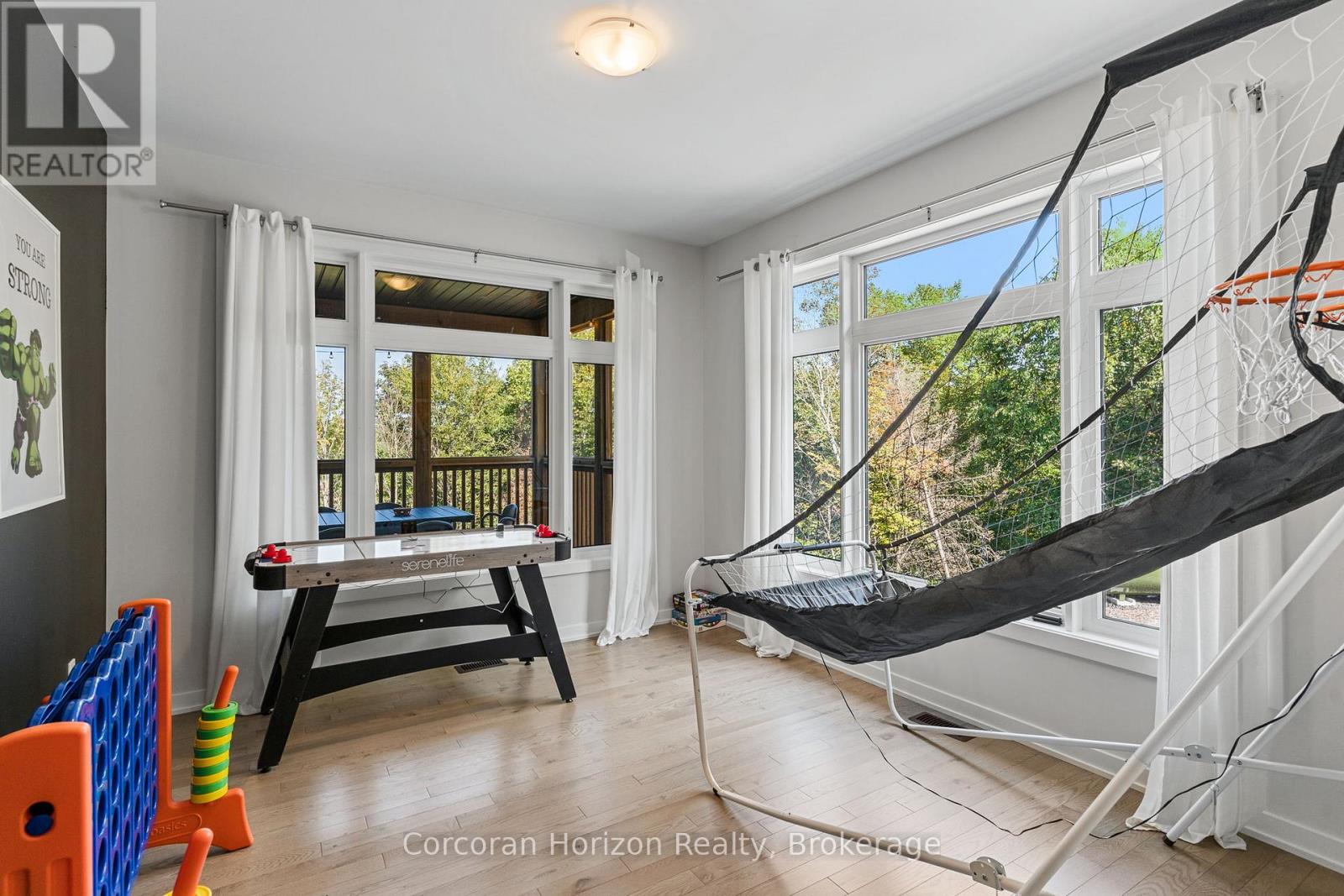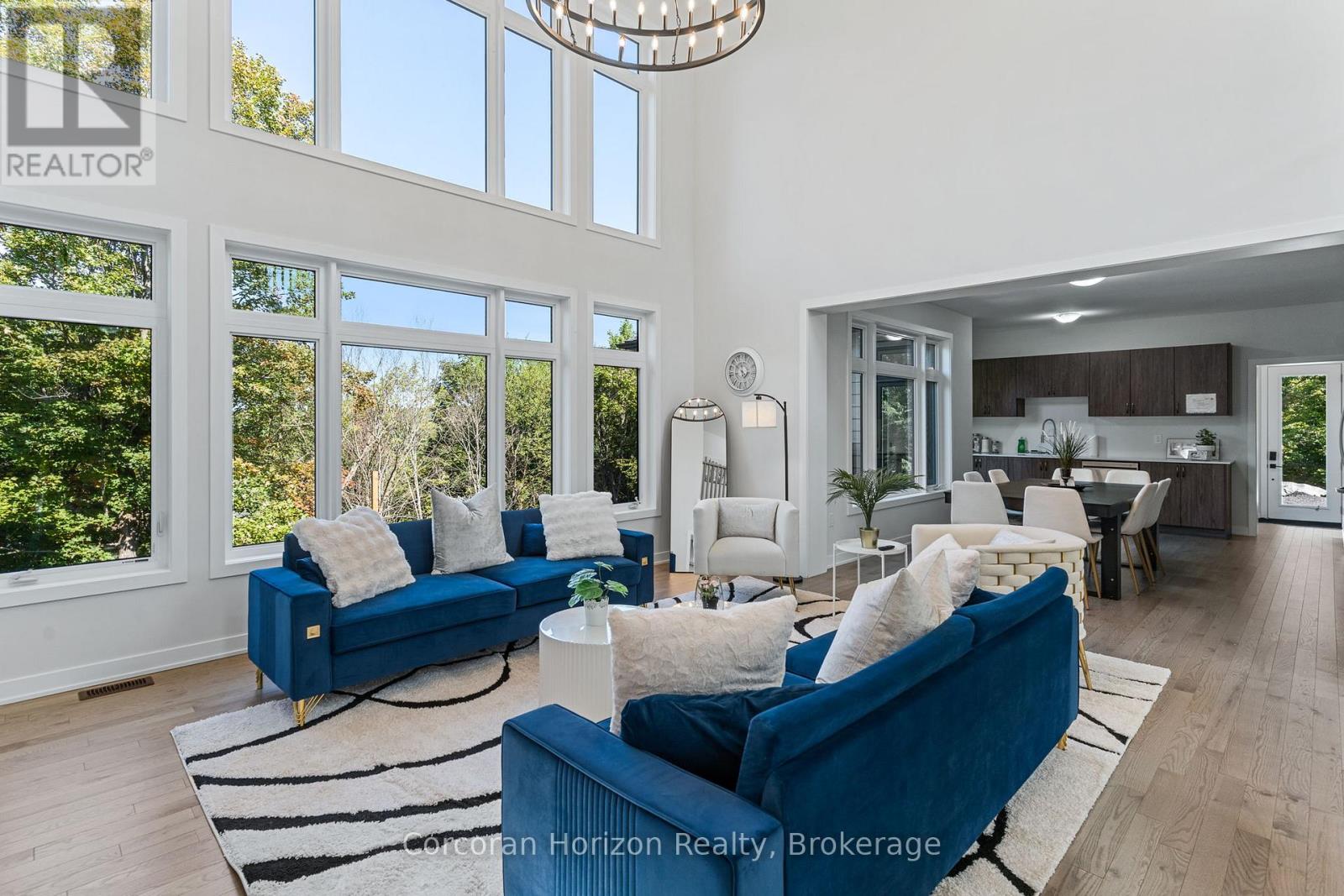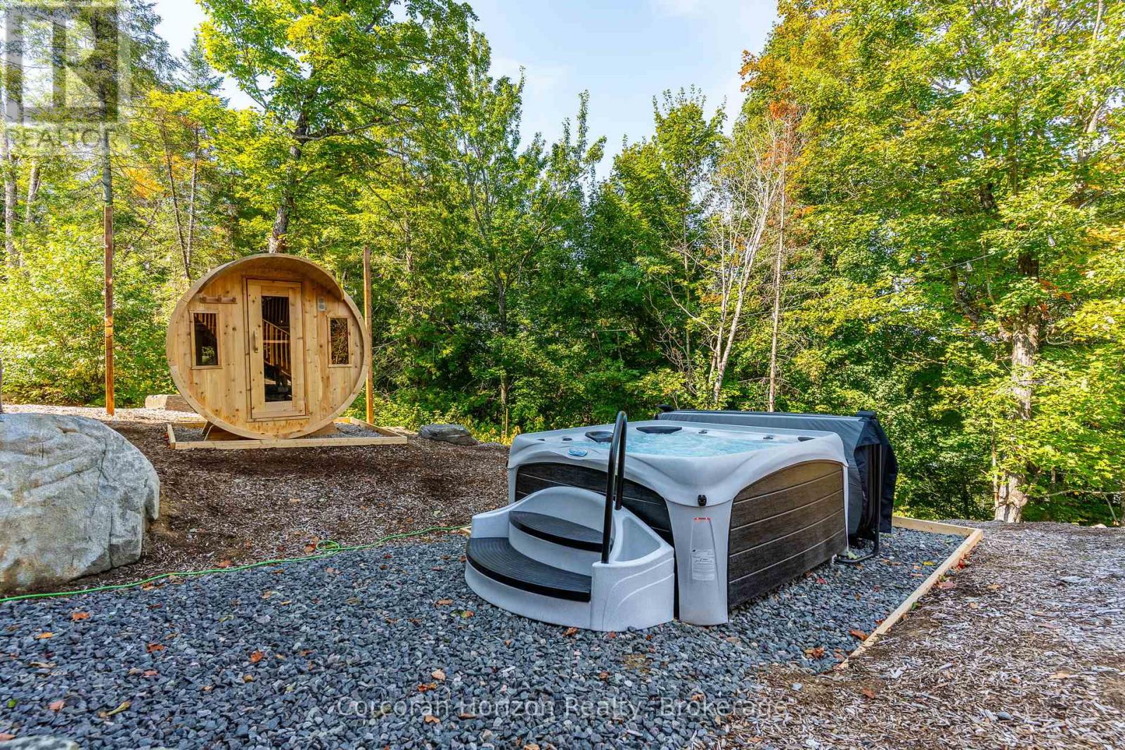Your 2024 custom-built home in Lake of Bays, Muskoka, awaits. This truly stunning and luxurious property has the quality you desire in the location you've always wanted. The space flows eloquently, natural light pours in, and high-end finishes and furnishings, giving you a taste of luxury in the midst of beautiful, rugged forests, offering a rare, exceptional getaway that most people never expect to find in this part of Muskoka's landscape. Thoughtfully designed for all-season living, the home features soaring 18 ft ceilings, a dramatic wall of windows, four spacious bedrooms, including a main-floor primary suite with an ensuite, and a versatile office or rec room. Your new home could also be a revenue-generating asset. There is already a track record and operations in place for a fully licensed, turnkey short-term rental business, with bookings consistently rolling in. The choice is yours: continue the STR business as is, make this your new home in Muskoka or do both! This stunning 2,860 sq. ft. retreat at the end of a cul-de-sac sits on 2.3 acres and is a nature lover's paradise, backing onto an environmentally protected area with breathtaking panoramic water views that can be seen from every room in this home! A fully screened Muskoka room, an upgraded full-sized walk-out basement, and a waterside-view fire pit create perfect spaces for entertaining or relaxing year-round. Experience total privacy and relaxation with a new (2025) hot tub & barrel sauna. Your personal spa experience is ready and waiting. Surrounded by a vast network of trails and a short drive to Algonquin Park, Deerhurst Resort, Limberlost Forest, Arrowhead Park, and the vibrant town of Huntsville. With easy access to Highways 11 & 60, plus a Tarion New Home Warranty and future access to a clubhouse with an infinity pool and gym (completion Spring/Summer 2026), this is your chance to embrace luxury living in the heart of Muskoka's wilderness. (id:58834)