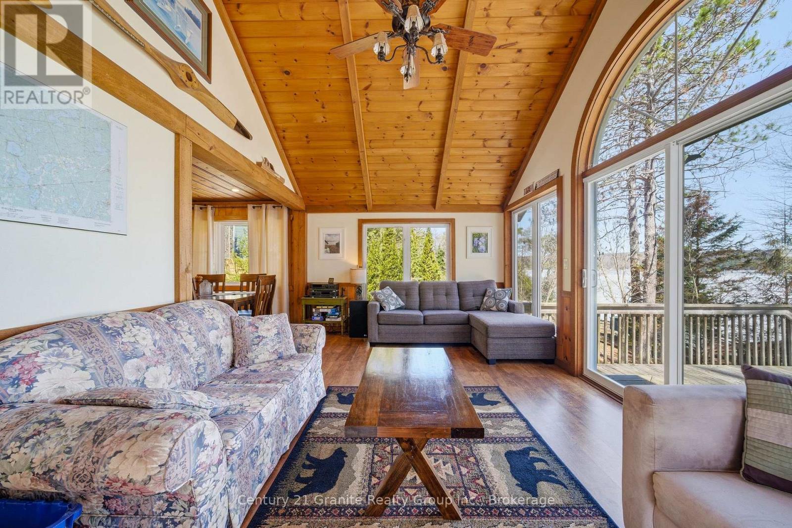 Set on the shores of Halls Lake in Algonquin Highlands, this well-maintained cottage offers a warm and inviting way to enjoy waterfront living. With eastern exposure, mornings are filled with soft natural light and open lake views-perfect for starting the day with a coffee by the water. The main cottage offers just over 930 square feet of living space, finished in low-maintenance vinyl siding. Inside, the layout is practical and comfortable, featuring two bedrooms and a 3-piece bathroom with heated flooring for added comfort. The property is serviced by a septic system and 200-amp electrical. Stairs lead down to the waterfront, where clear, deep water off the dock makes swimming and boating easy to enjoy. A dock is already in place for convenient lake access. At the water's edge, the 224 square foot boathouse adds charm and extra space, complete with a guest bedroom and a peaceful, right-by-the-water setting-perfect for relaxing afternoons and quiet evenings by the lake. Outdoor living is centered around the shoreline, with a firepit area overlooking the water and an easy flow from the cottage to the lake. Access is via a year-round private road. Halls Lake is well known for its excellent fishing, clean water, and great boating, offering something for everyone. Located just 20 minutes to Minden and 25 minutes to Haliburton, with The Pepper Mill Steak and Pasta House, a convenience store, and Mason Jar Food Company all within 10 minutes, this property offers both comfort and convenience in a beautiful lakeside setting. (id:58834)