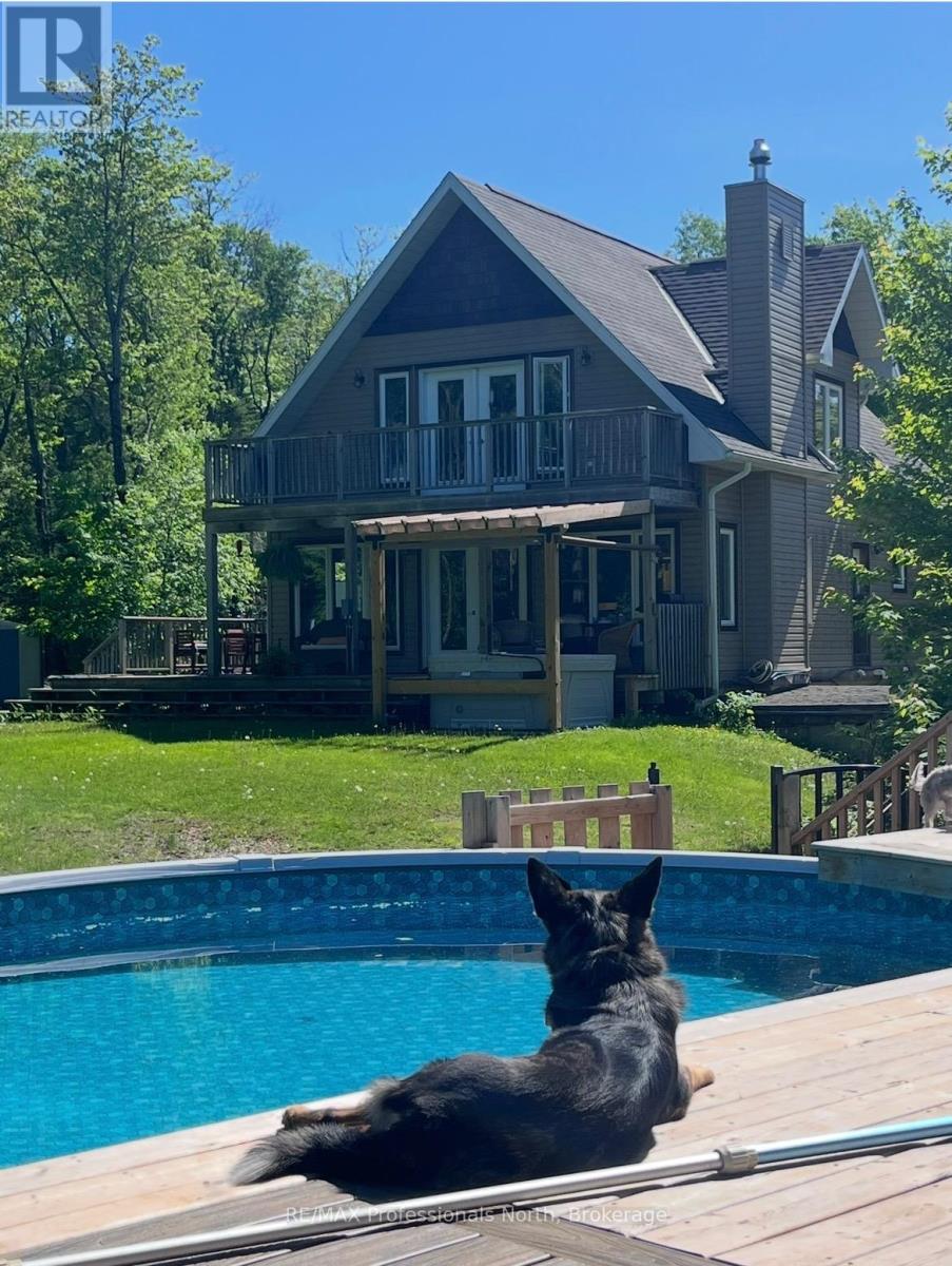 Just east of Bracebridge, this exceptional family home offers privacy, space, and convenience on a picturesque 8.84-acre property. A long, meandering driveway creates a grand sense of arrival, setting the tone for this peaceful retreat. The home features four spacious bedrooms and a dedicated main-floor office, ideal for remote work. Sunlight fills the interior through expansive windows, creating a bright, inviting atmosphere that brings the outdoors in. A charming country kitchen with timeless finishes anchors the main living space, perfect for everyday living and entertaining. Recent updates, including select paint and modern light fixtures, add a fresh touch throughout. The main floor laundry room is thoughtfully designed with a folding counter, additional cabinetry, and ample shelving. Step outside to your private outdoor oasis. Enjoy tranquil pond views, relax in the hot tub, or spend summer days by the saltwater pool. The pool house offers exciting potential for customization, while covered front and rear porches provide peaceful spaces to unwind. Evenings are best spent around the private fire pit under the stars. The fully finished walkout basement is designed for entertaining, featuring a cozy wood-burning stove, private bar, and pre-wiring for your ideal TV setup-perfect for gatherings or quiet nights in. This 1,000 sq. ft. detached garage is the ultimate workshop or "man cave." It features an ICF foundation, radiant in-floor heating, and a versatile upper-level loft perfect for a studio or guest suite. Complete with RV storage and ample parking, it's built for the Muskoka lifestyle. Offering excellent potential and to be made memories, this property combines rural tranquility with close proximity to downtown Bracebridge, known for its schools ( this property falls in highly desirable Macaulay School area), recreation, and community amenities. An exceptional opportunity to enjoy Muskoka living with privacy, comfort, and convenience. (id:58834)
