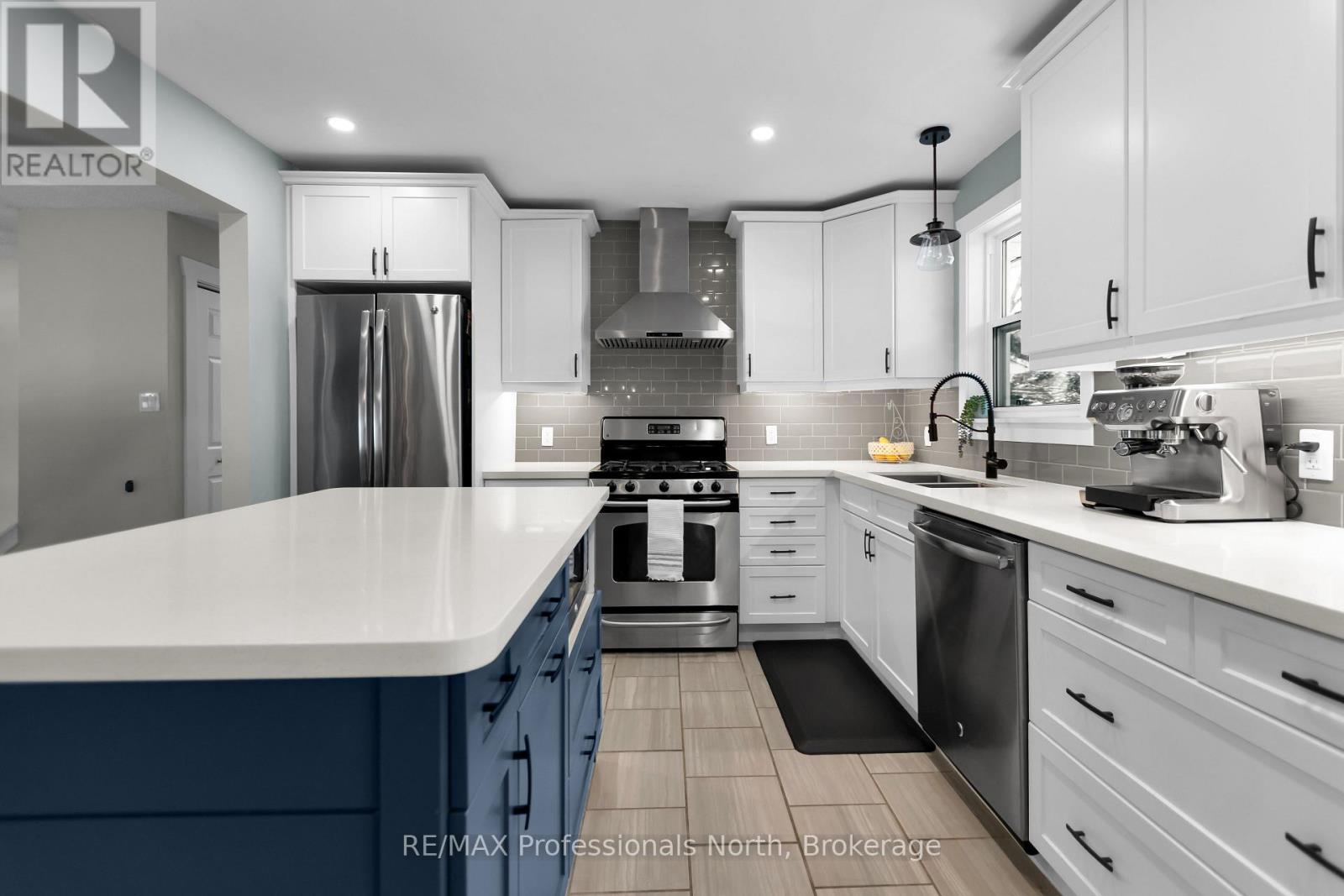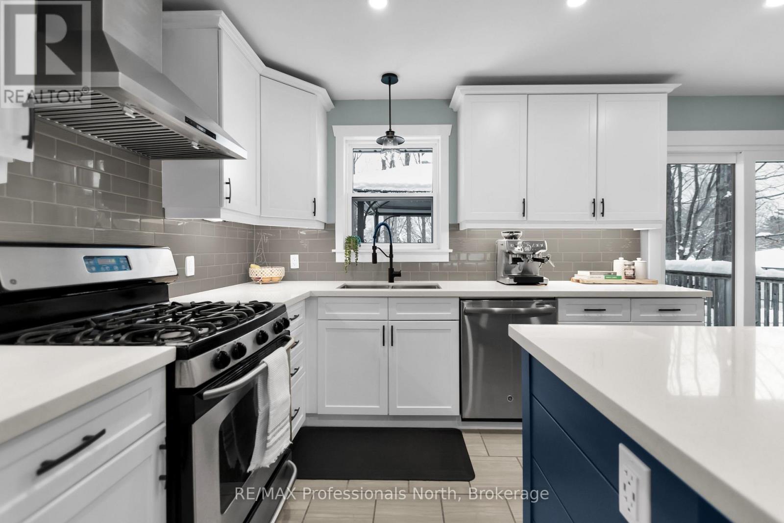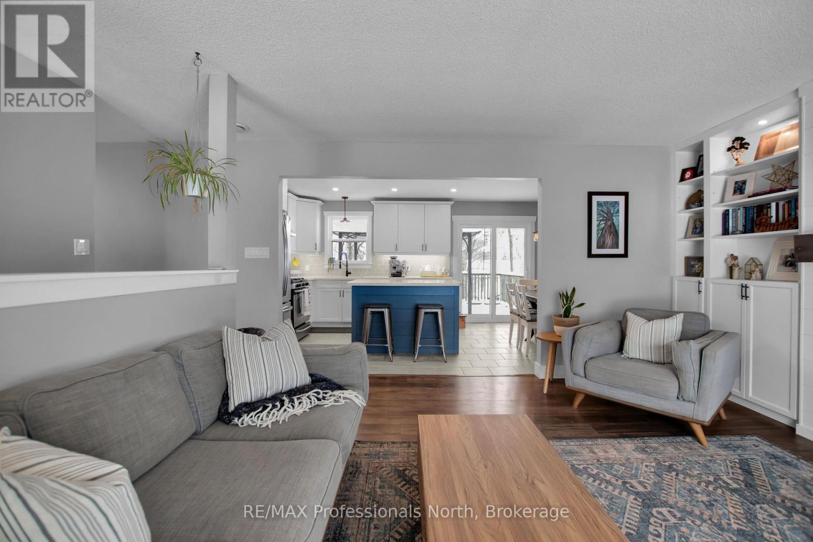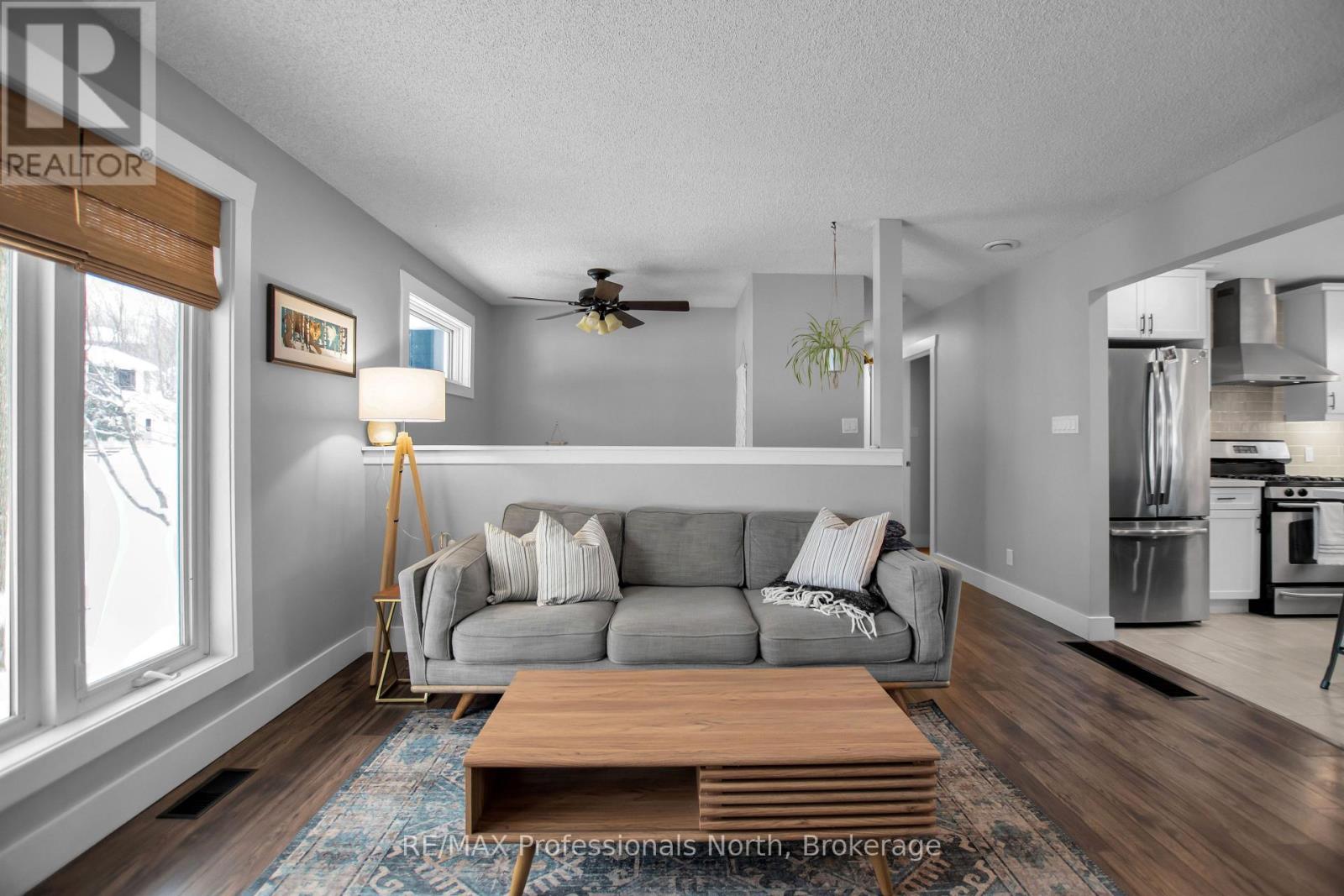 Welcome to this beautifully updated 4-bedroom, 2-bath raised bungalow nestled in one of Huntsville's most sought-after, family-friendly neighbourhoods. Set on municipal services and framed by mature trees, this home blends modern upgrades with everyday comfort and convenience.The bright and inviting main level features newer flooring and a tastefully renovated kitchen offering ample cabinetry and generous prep space-perfect for cooking, hosting, and gathering. The cozy living room provides a welcoming place to unwind, complete with a charming fireplace and custom built-in shelving for added storage and style. Three comfortable bedrooms and a full 4-piece bath complete the main floor. The fully finished lower level extends your living space with an open-concept family room, a handy half bath, a spacious 4th bedroom, and a dedicated laundry/storage room - an ideal setup for guests, teens, or a home office.Step outside to a private, fully fenced backyard featuring a deck and a durable metal gazebo, creating an inviting outdoor retreat for dining, entertaining, or simply relaxing in the fresh Muskoka air. Conveniently located near downtown Huntsville, local parks, and schools, this home offers the perfect blend of tranquility and accessibility. A wonderful opportunity to settle into a desirable neighbourhood-just move in and enjoy! (id:58834)