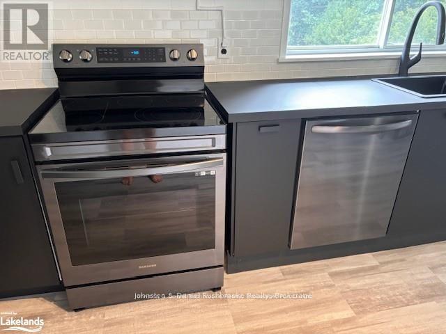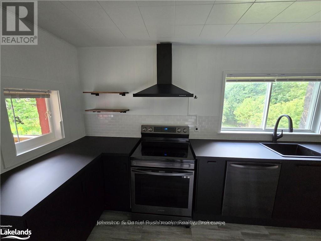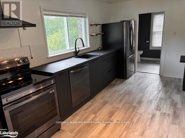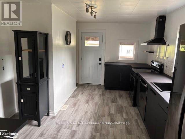 Come see this lovely stone wrapped in-town bungalow conveniently located within walking distance to local schools, excellent shopping, and amazing dining options nearby to explore year round. Updated, move in ready 2 bedroom home offers 982 square feet of living space with bright kitchen accessed from the side entry covered porch with perfect eat in breakfast nook, open dining and living room with beautiful and durable flooring, front and side entrance for guests to come in and two great bedrooms. Full, unfinished basement offers laundry area and tons of storage space for seasonal items, with walkout main door access to the backyard. Private driveway parking for two vehicles, and a great backyard space to utilize. Some recent upgrades include: all new windows and doors, brand new kitchen, updated bathroom, new flooring, high efficiency furnace (2022), new dishwasher, new washer, smart thermostat and freshly painted throughout. A great option for a young couple starting out, low maintenance home with full municipal services, take advantage of this superb locale with endless activities at your fingertips. (id:58834)